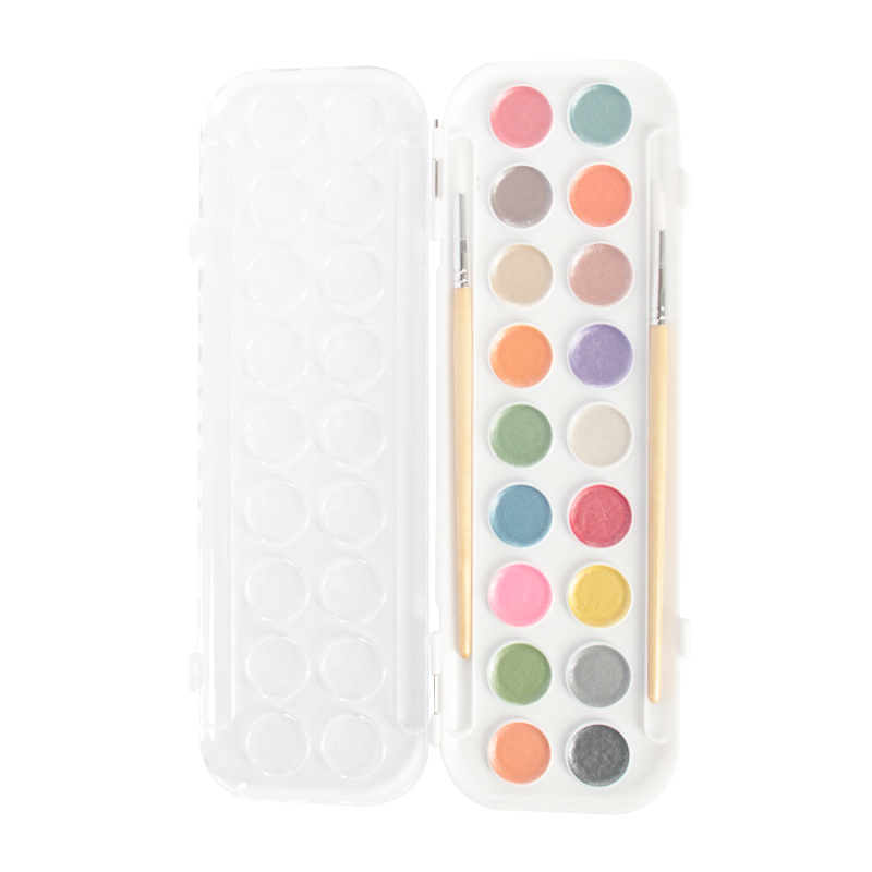 Dirancang untuk kenyamanan, format panci cat air tidak hanya portabel tetapi juga dilengkapi dengan kuas klasik, menjadikannya teman ideal untuk ekspresi kreatif saat bepergian. Membersihkan adalah tugas yang sederhana, karena pigmen yang larut dalam air mudah dicuci dan tidak meninggalkan noda membandel pada pakaian.