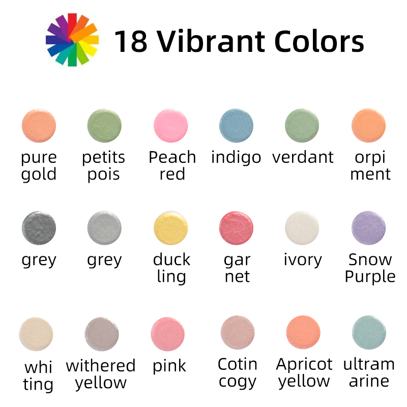 Keserbagunaan cat air 18 Warna Metalik ini meluas ke berbagai proyek kreatif seperti pembuatan kartu, ilustrasi, lukisan, kaligrafi, dan banyak lagi. Mereka juga berfungsi sebagai hadiah yang sangat bagus untuk teman, pelajar, atau siapa pun yang memiliki hasrat untuk melukis.